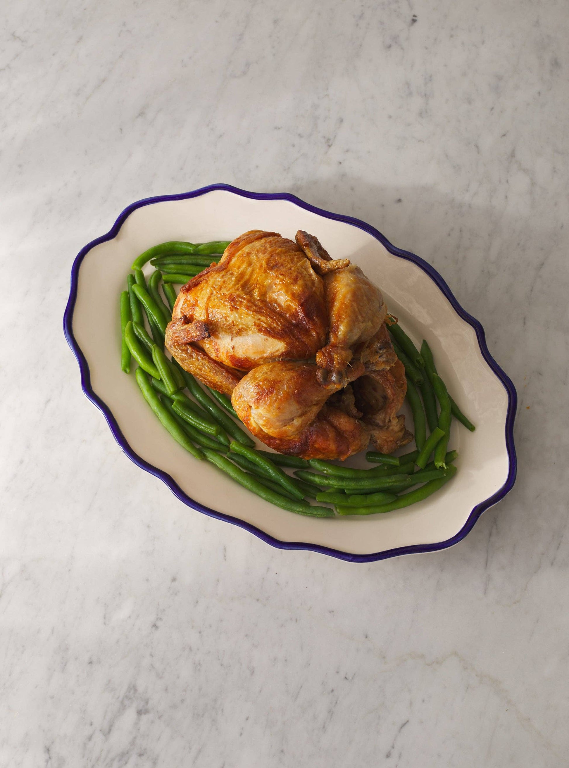 Oval Platter 15.5" is a centerpiece family style dinner. The hand-painted rim acts as a frame to elevate home-cooked meals. Made in Portugal from ceramic earthenware.