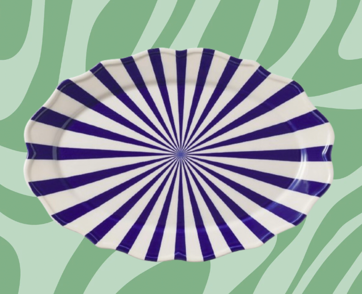 The striped Mafalda Oval Platter 15.5" will be your loudest dinner guest, but also stack away neatly in your cabinet when the party's over. Made in Portugal from ceramic earthenware.